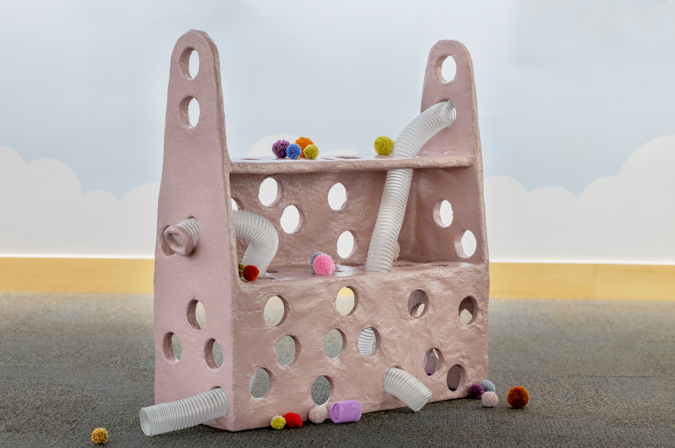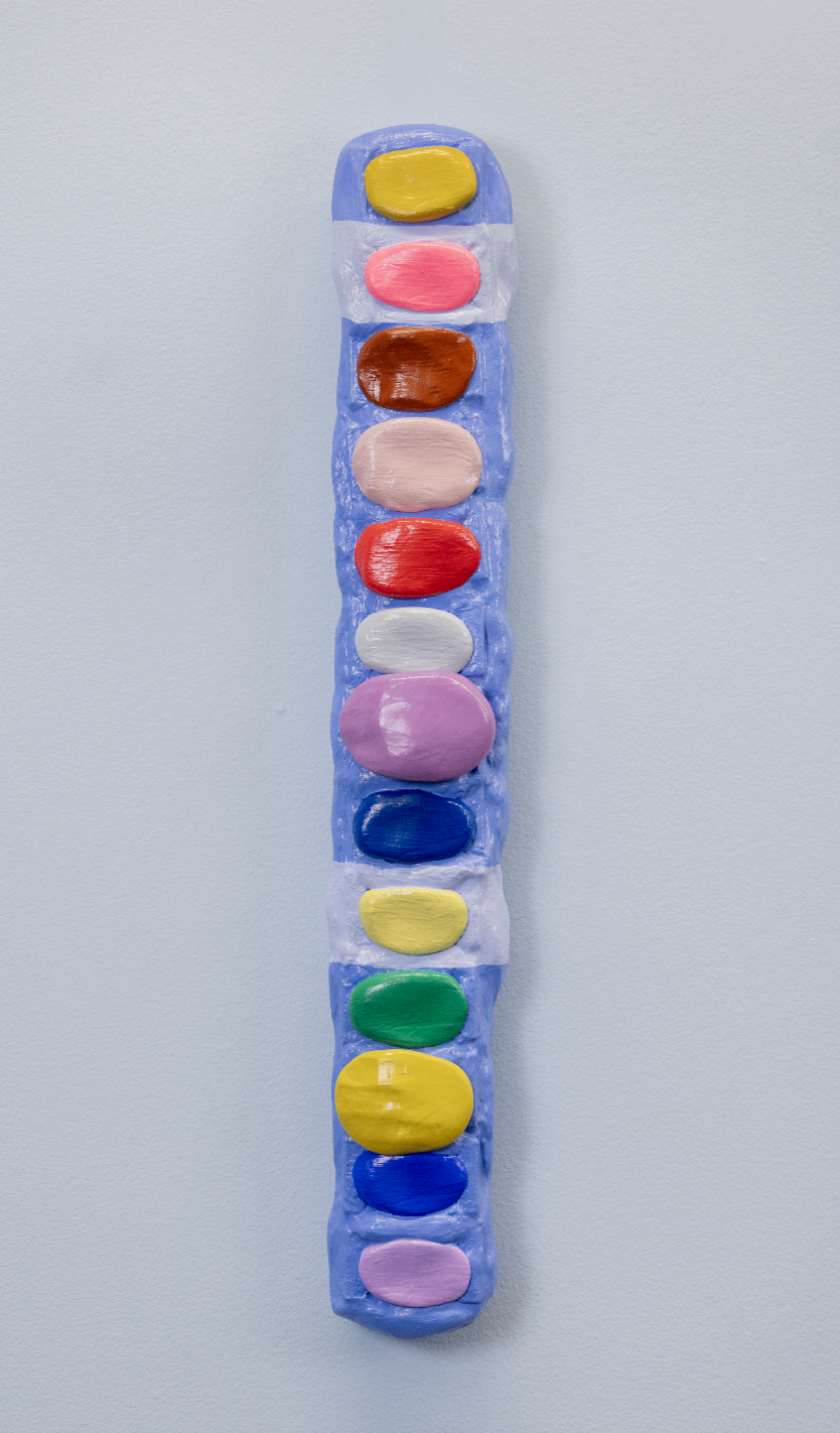 wood, sculptamold, shower rings, gouache